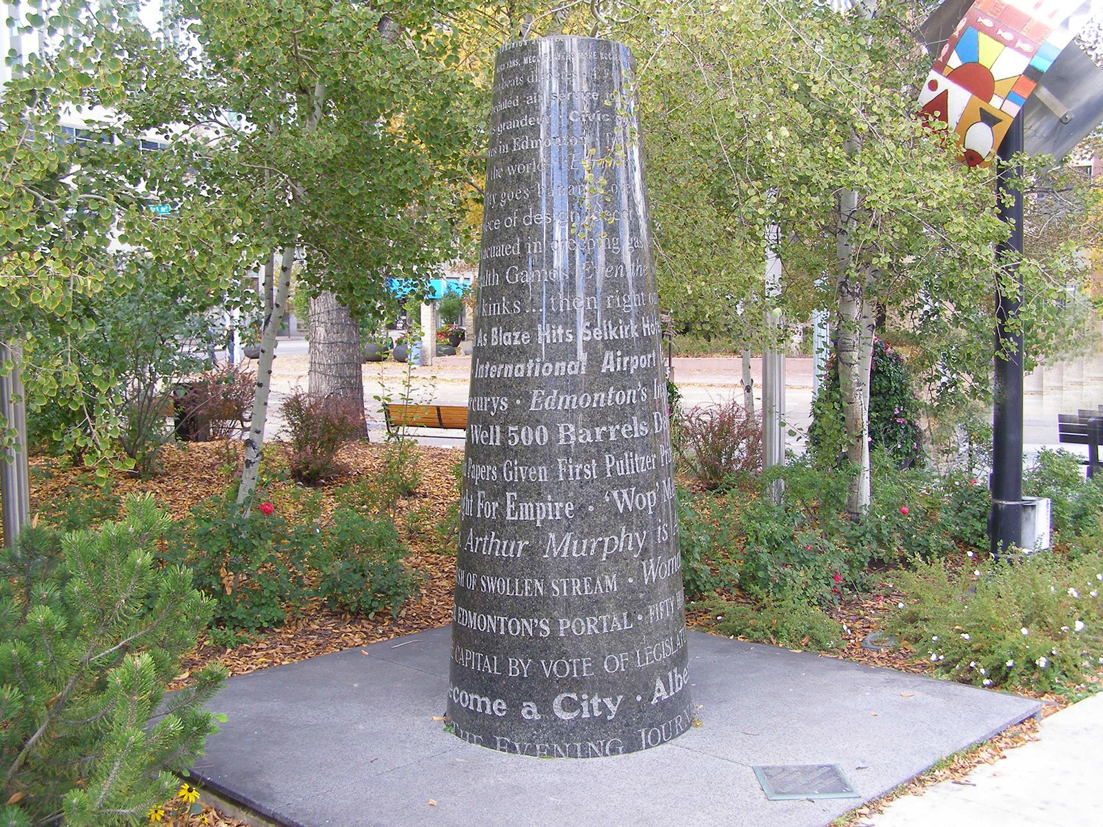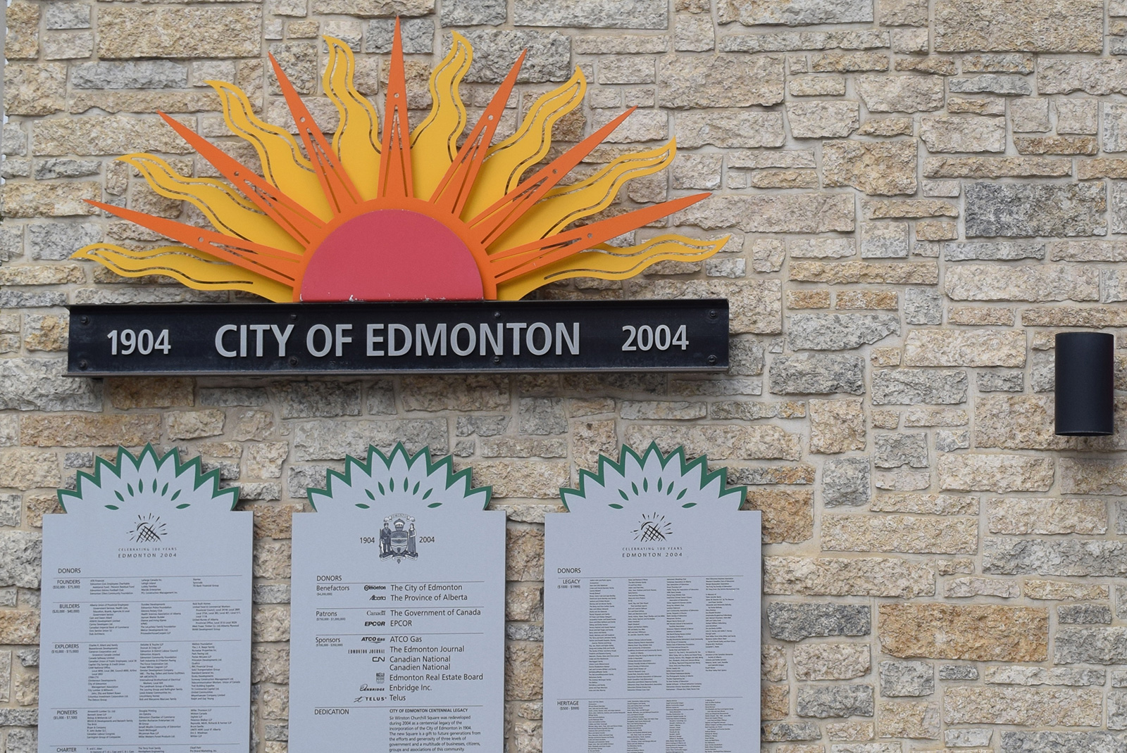 - East Formal Gardens - North — The gardens link both Sir Winston Churchill Square and City Hall Plaza. The north green space features the Madonna of the Wheat sculpture along with a friendship garden offering a respectful space for the raising of a tipi.