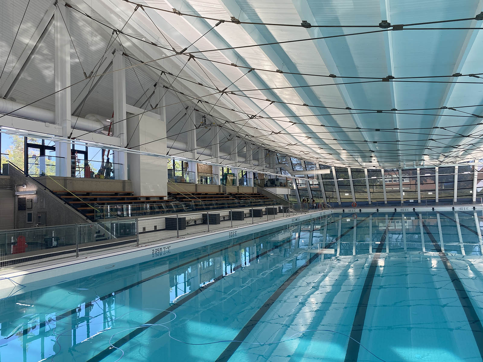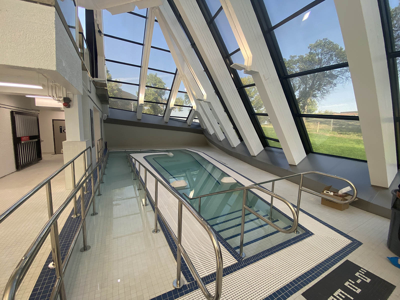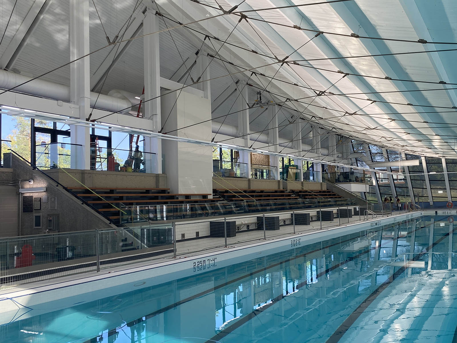Phase Two rehabilitation funding was approved by Edmonton City Council in spring 2023. This phase addresses further lifecycle needs of the facility and integration of accessibility and sustainability policies. A major piece of this rehabilitation project is the replacement of the building exterior, the glass curtain wall panels, roofing assembly, lighting and perimeter drainage to improve environmental performance. Other work includes whirlpool, sauna, steam room and bleacher modifications as well as the addition of an elevator to improve accessibility.